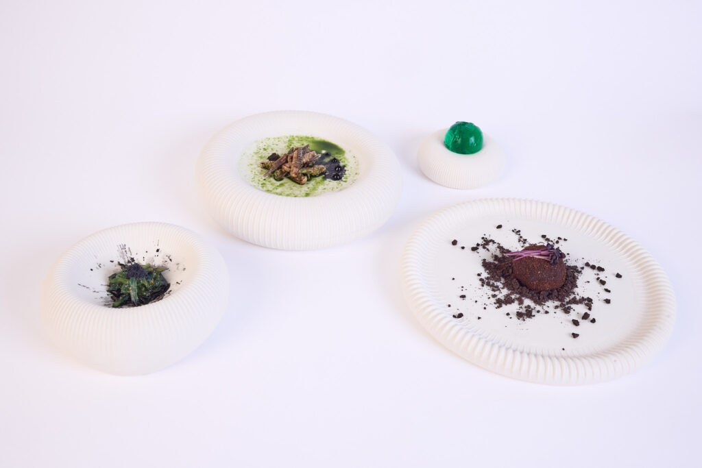 In fine dining, porcelain has often been merely a functional backdrop. Cielo reimagines this role: as a stackable table sculpture, the set becomes part of the culinary experience. Instead of serving courses individually, guests discover the menu layer by layer from top to bottom. The matte biscuit look maintains an elegant restraint that stages the food in an exciting way without dominating it.