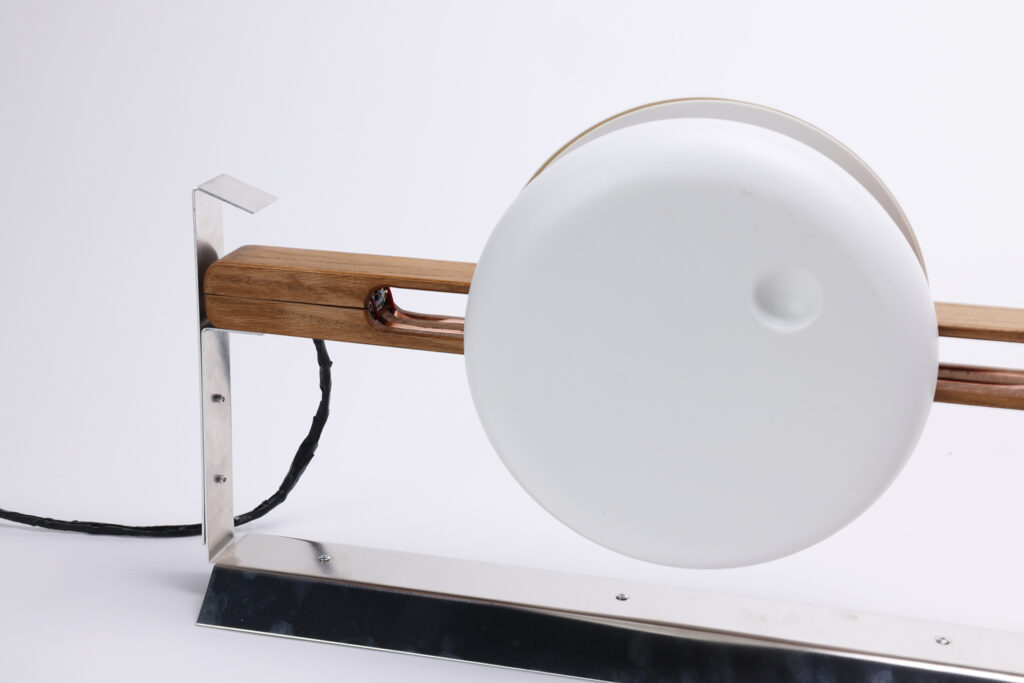 Die Leuchte Ground ist aus dem Interesse heraus entstanden, den Umgang mit Licht wieder spielerisch erfahrbar zu machen. Durch Bewegung und Rotation lässt sich die Leuchte intuitiv einstellen und erleben. Das runde Hauptartefakt in Kombination mit der Schiene erinnert an eine Murmelbahn aus Kindertagen und lädt zum spielerischen Experimentieren ein. So erhellt Ground nicht nur den Raum, sondern spricht auch das innere neugierige Kind an.