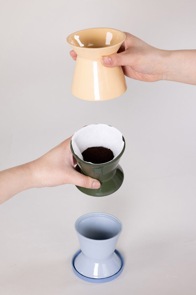 ‘SAI’ is a three-part porcelain coffee set that helps beginners make filter