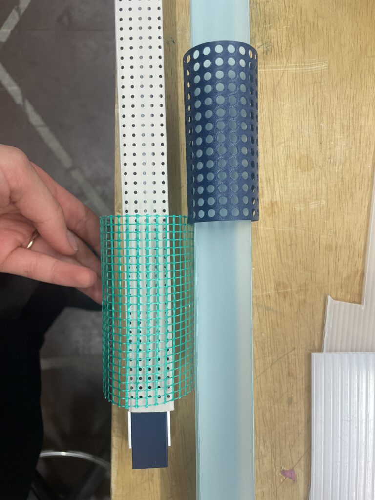 ER23 ist ein Schienensystem und dient als Grundlage für Leuchten in unterschiedlichen Nutzungskontexten im Raum. Die Aluminiumschiene kann mit verschiedenen Diffusoren, Schirmen sowie End- und Verbindungsteilen kombiniert werden und sich so zu unterschiedlichen Leuchtentypen – für Boden, Wand oder Decke – zusammensetzen. Maße und Zubehör sind individuell konfigurierbar und können jederzeit ausgetauscht werden. Schirme und Diffusoren werden dabei einfach in seitliche Profilnuten eingeschoben.