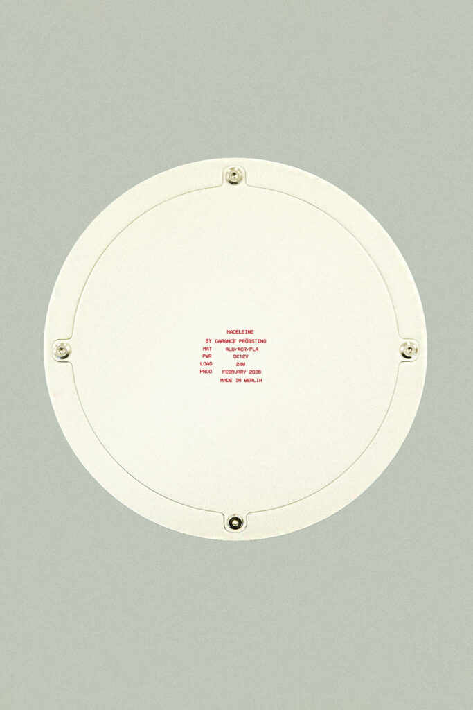 Madeleine erforscht die Abdankung der Objekt-Autonomie. In einer von antizipatorischen Services gesättigten Welt bleibt die Leuchte stumm, bis eine kollektive Intention manifestiert wird. Dieser Akt des gemeinschaftlichen Vollzugs macht aus Licht mehr als ein Werkzeug: Es wird zum relationalen Vermittler und zum geteilten zeitlichen Rahmen für die Aneignung des gemeinsamen Raums.