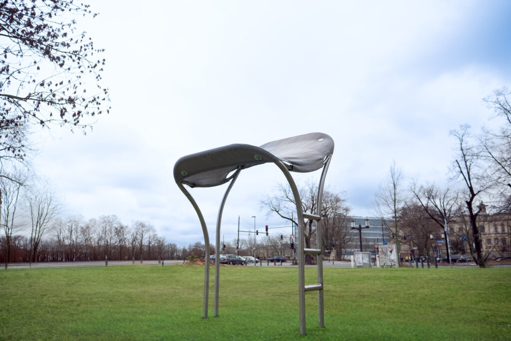 PAUSE is a micro-architectural outdoor lounger that creates spaces for mental recovery in urban environments. By encouraging a horizontal body position, it enables a shift in perspective, fostering distance from the surrounding city and promoting moments of pause. At the same time, the structure provides shade, responding to increasing urban heat. Developed in three variations, it offers different degrees of height, accessibility, and perception, a „third place“ for everyday relief.