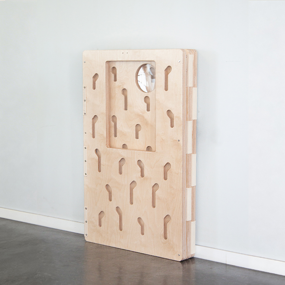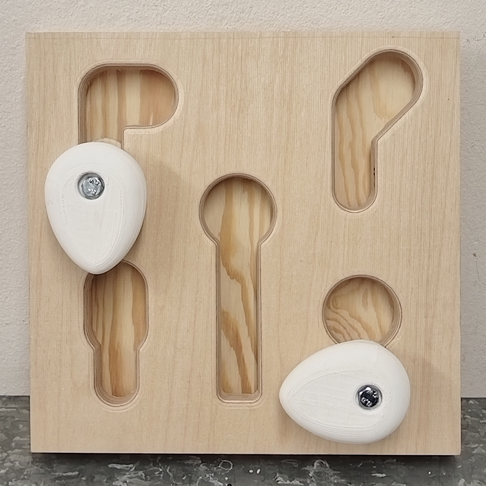 ReRoute Play Wall ist ein modulares, faltbares Boulderwandsystem für den Innenraum von Kitas. Es reagiert auf die begrenzte Anpassungsfähigkeit vieler bestehender Boulderwände für verschiedene Altersgruppen. Kinder können Griffe selbst umsetzen, den Schwierigkeitsgrad anpassen und eigene Routen und Spiele entwickeln. So werden nicht nur motorische Fähigkeiten gefördert, sondern auch Kreativität, Risikokompetenz und Selbstwirksamkeit. Nach dem Spielen lässt sich das System zusammenklappen, sodass der Raum für andere Aktivitäten genutzt werden kann.