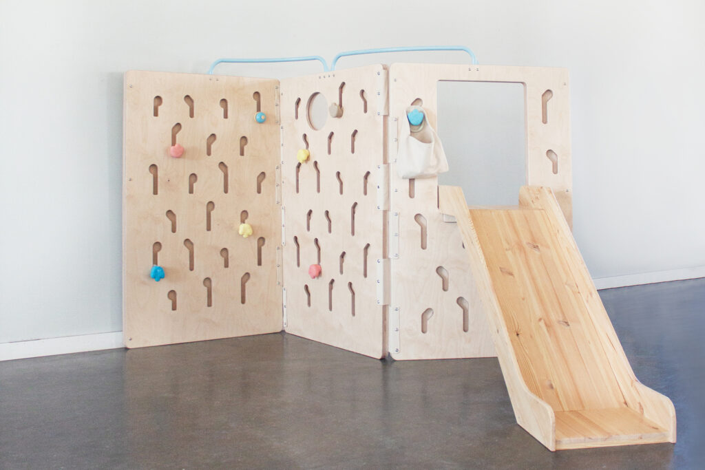 ReRoute Play Wall is a modular, foldable bouldering wall system designed for indoor kindergarten spaces. It addresses the limited adaptability of many existing bouldering walls, which often fail to accommodate mixed-age groups. Children can reposition holds, adjust the level of difficulty, and create their own routes and games. When not in use, the wall folds away to free up space for other activities.
