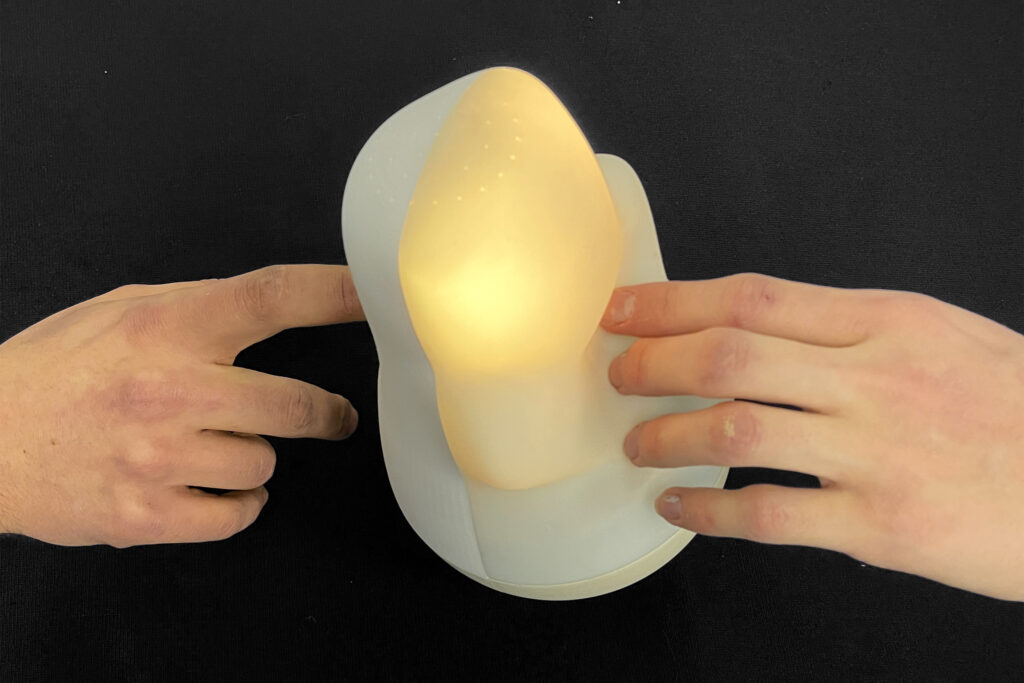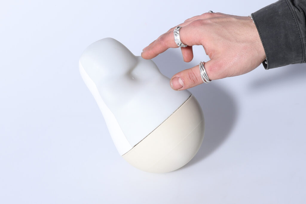 Ein interaktives Stehaufmännchen, konzipiert als Fidgeting-Tool für niederkomplexe Bewegungen, das zwischenmenschliche Gespräche sowie die fortlaufende Interaktion mit dem Objekt und miteinander fördert.