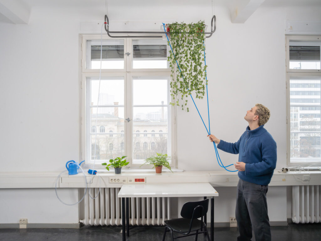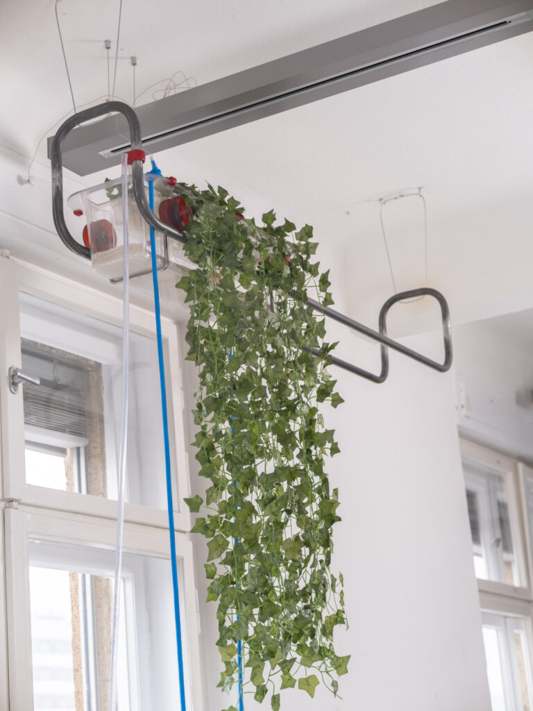 Mit ROOT.INE kannst du dir nicht nur einen Pflanzenvorhang selbst wachsen lassen, sondern zudem ein tägliches Ritual der Entschleunigung schaffen. Statt versteckter Automatik fordert dieses schienengeführte System deine volle Präsenz: Über eine manuelle Handpumpe begleitest du das Wasser nach oben zu den sichtbaren Wurzeln im transparenten Kasten.
