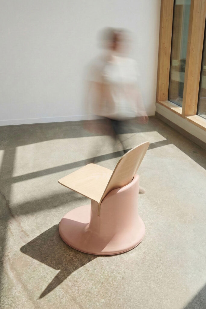 Observation rooms in acute psychiatric units prioritise safety, often limiting autonomy. Yet enabling patients to influence their surroundings reduces stress and supports recovery. This project explores how safety and self-efficacy can coexist. Developed through a co-participatory process with patients and professionals, it creates new possibilities for action within strict requirements. The result: three objects – Das Licht, Der Haken, and Die Sitzmöglichkeit, each enabling different forms of interaction.