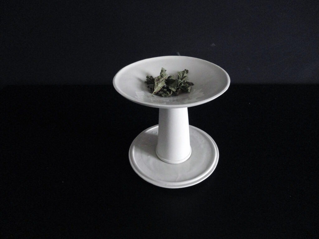 TO is a ceremonial tea object designed for a future where almost every single square meter is sealed in concrete buildings and human-made structures. Within these megacities a group of people start growing and collecting wild herbs in the urban environment. To celebrate this glimpse of nature they hold tea ceremonies where they share a cup of tea.
