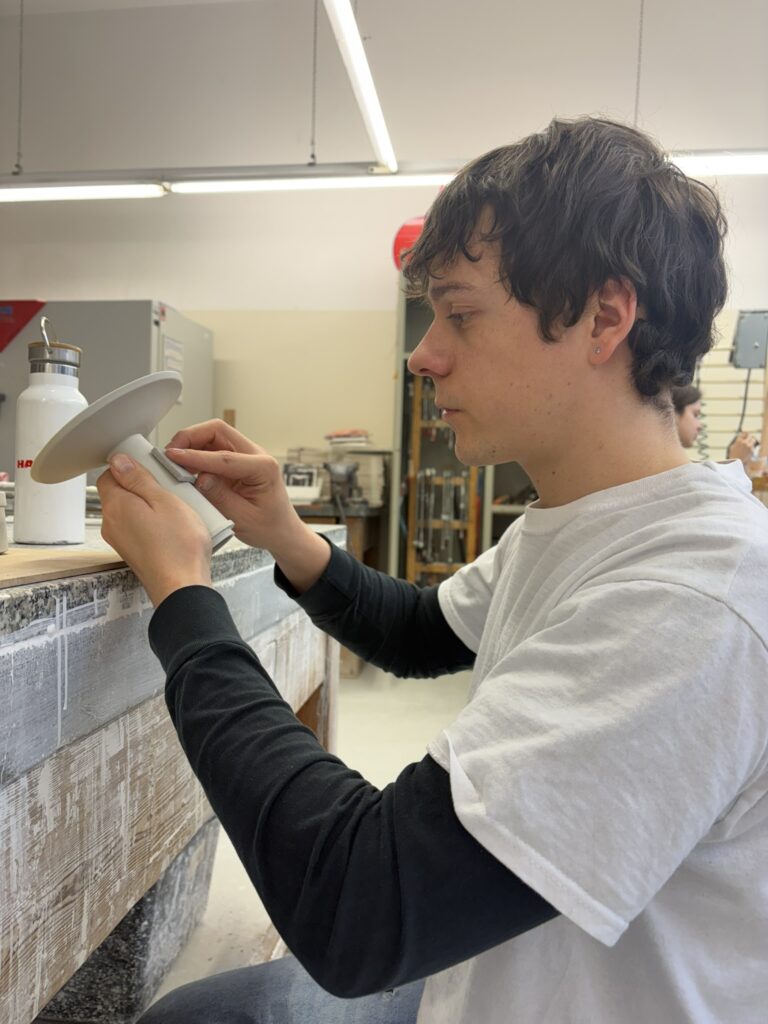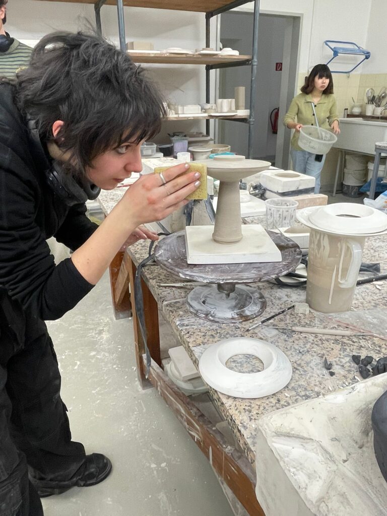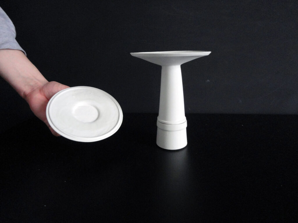TO wird gegossen aus leicht grau gefärbtem Porzellan. Mit dieser Produktionsmethoden erreicht man die präzisesten Ergebnisse. Dies ist sehr wichtig, da die einzelnen Teile des Teeobjektes in einander passen müssen.