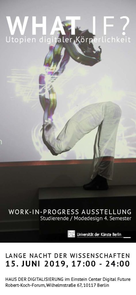 Das 4. Semesterprojekt „What if? Utopien digitaler Körperlichkeit“ wird am 15. Juni eine Work in Progress Ausstellung im HAUS DER DIGITALISIERUNG im Einstein Center Digital Future Robert-Koch-Forum veranstalten.