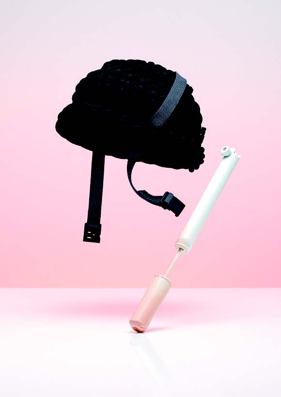 Air is a very interesting »material«: It is everywhere, highly ecological and it keeps us alive. In my diploma I developed a new pneumatic-contractile textile: The »pneumatic knit«. If it gets inflated, it loops compress until the structure completely cures. I used this material to create CHAPEAU! and KNITSHELL, a new option of bicyclist head protection, which can be deflated for easy transportation when not in use.