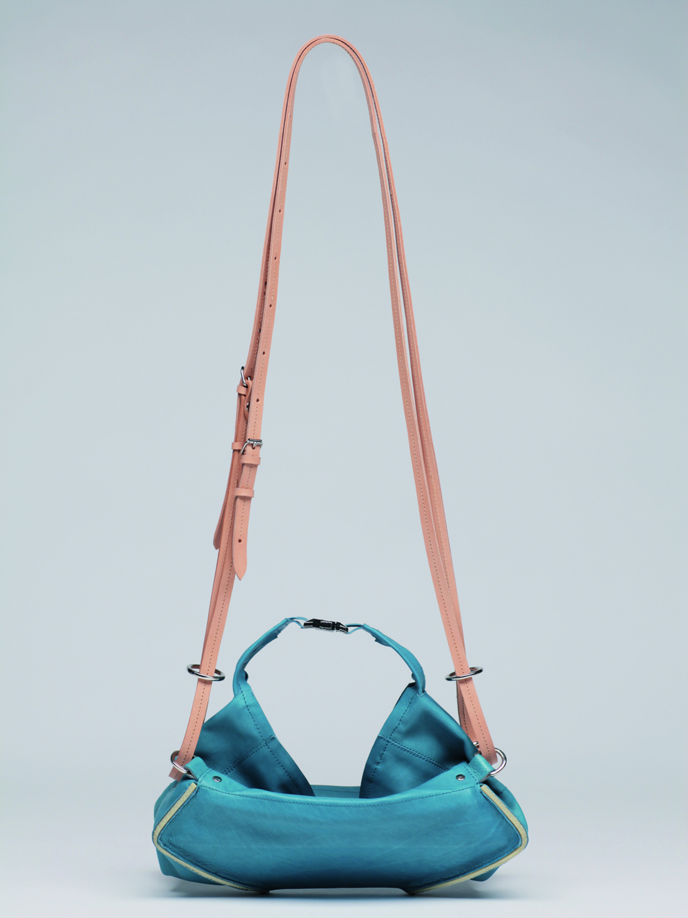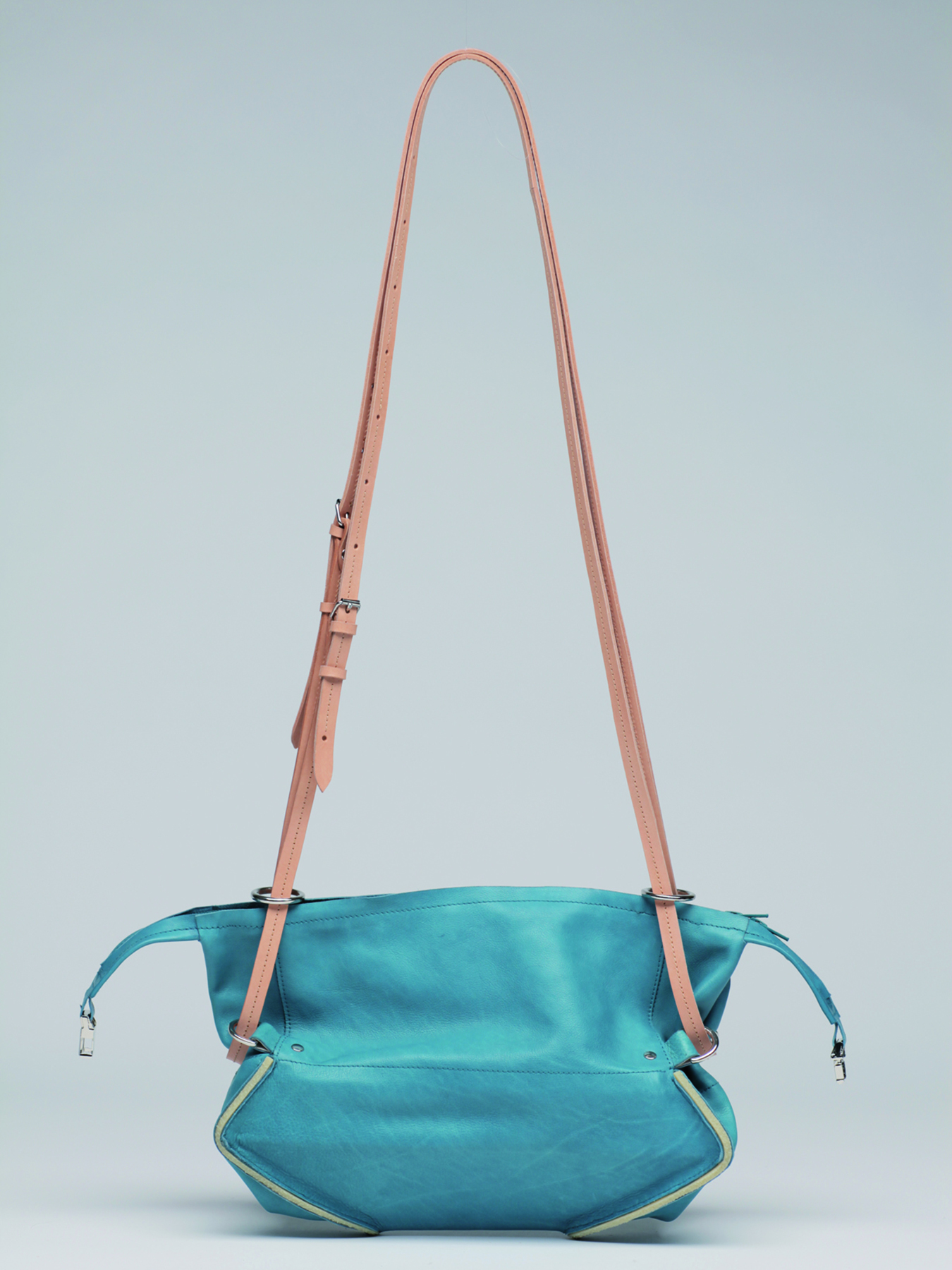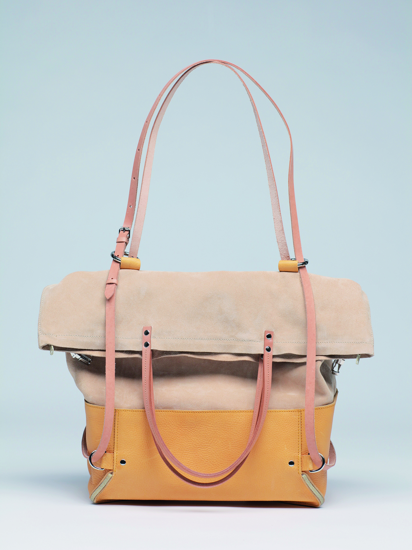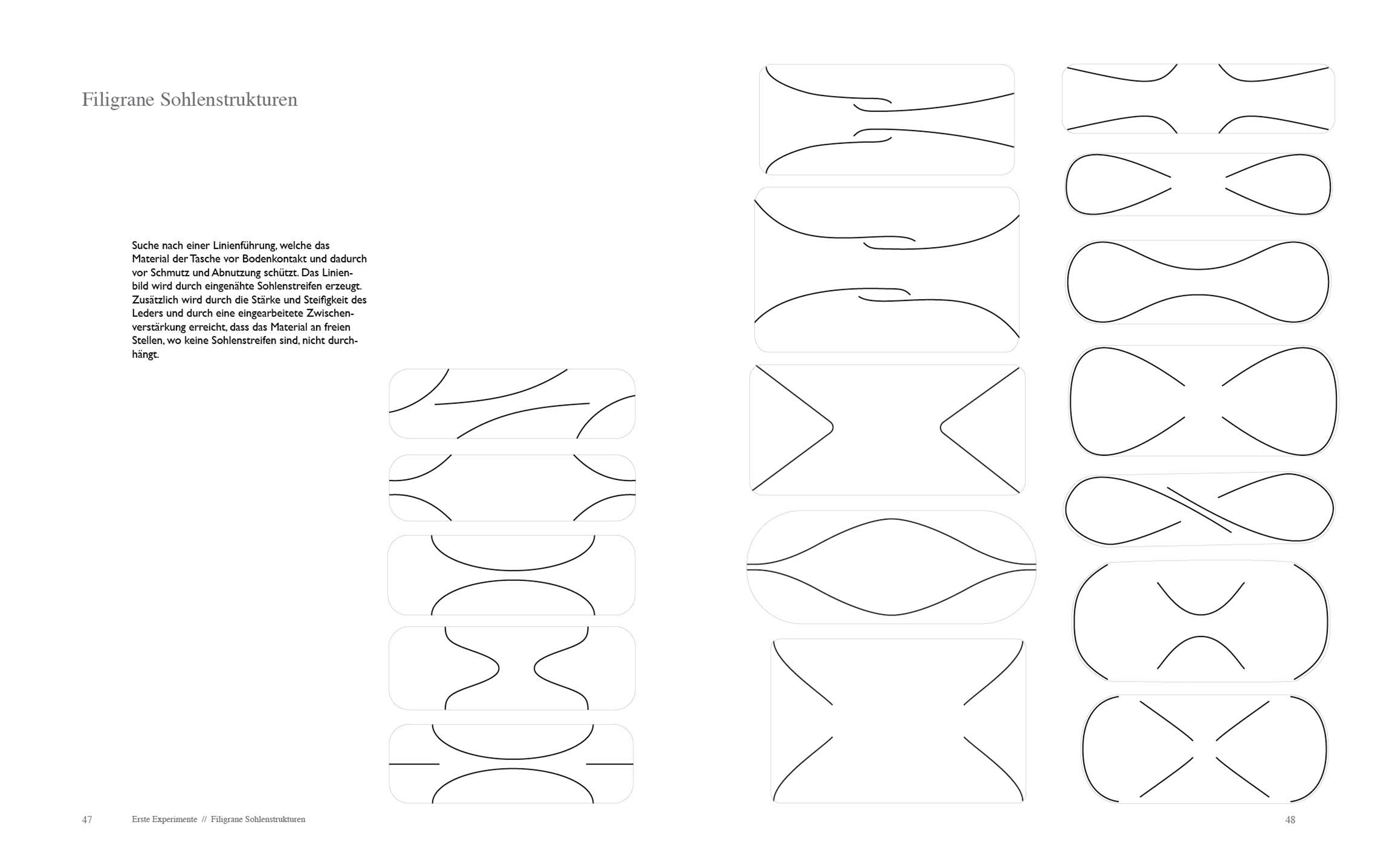 Die Taschenkollektion Transfer ist inspiriert von Herstellungstechniken, Macharten und Formqualitäten aus der Schuhindustrie. Durch einen experimentellen Entwurfsprozess wurden verschiedene Modellreihen entwickelt, die durch Material, Form und Verarbeitung auf die Schuhwelt Bezug nehmen. So war die Sohle als Inspiration ein wichtiger Ausgangspunkt für die Entwicklung der Modelle und das Untersuchen und Nachdenken über den Gebrauch der Tasche. Die Sohle dient nicht nur als Schutz, sondern gibt dem Schuh auch eine gewisse Festigkeit. In Experimenten wurden demnach harte und weiche Materialien kombiniert und Formen gefunden, die den Charakter der Materialien besonders gut zur Geltung kommen lassen. Der Einsatz schuhverwandter Materialien bildet eine “Sohle” und zugleich eine neue Art der Verarbeitung. Die eingenähten Sohlenstreifen ergeben nicht nur einen Schutz vor Abnutzung, sondern lassen dank ihrem Formverlauf das Volumen der Tasche je nach Bedarf grösser und kleiner werden.