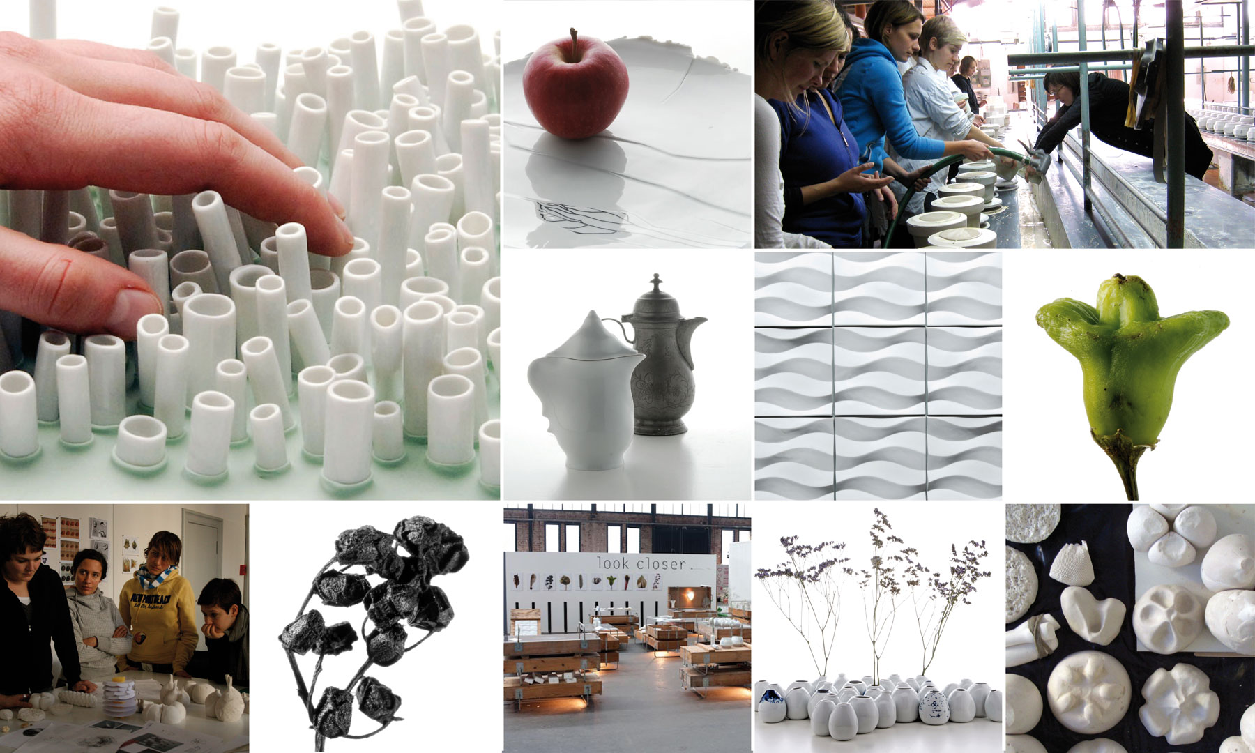 Zehn Studierende der Universität der Künste Berlin übersetzten Fundstücke aus dem Mikrokosmos in Porzellan. Naturformen und -phänomene, die sich erst bei näherem Hinsehen erschließen, wurden in handwerklichen und digitale Studien und Experimenten untersucht. So konnten die Möglichkeiten des Materials erforscht werden, ohne dessen übliche Verwendung im Gebrauchskontext Essen und Trinken in den Mittelpunkt zu stellen. Realisiert mit Unterstützung der KAHLA/Thüringen Porzellan GmbH.