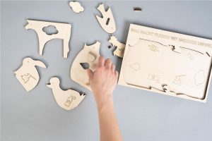 Nesting components on a sheet can be done in different ways, by hand and via digital means. To make an optimum puzzle with as little waste as possible and a nice and fitting design as outcome needs clever planning and designing.