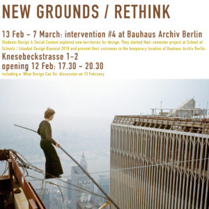 Design & Social Context’s Winter Semester will dive into the times we live in and the products, projects, strategies and services we need as a society now and in our near future. For that we will connect with Design Biennial Istanbul’s ‚School of Schools‘ and the six topics that it highlighted for the future of design and design education.