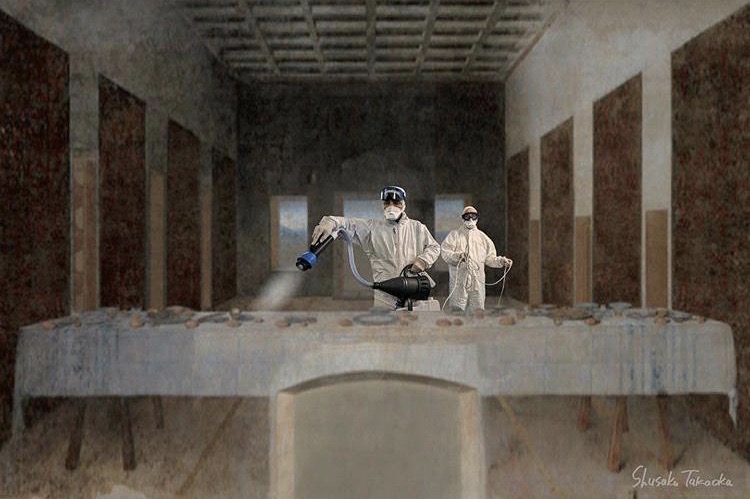 Zwei von Hand gefertigte Tischtücher dienen allen Studierenden als Basis für das kommende – digitale – Sommersemester 2020 Projekt.